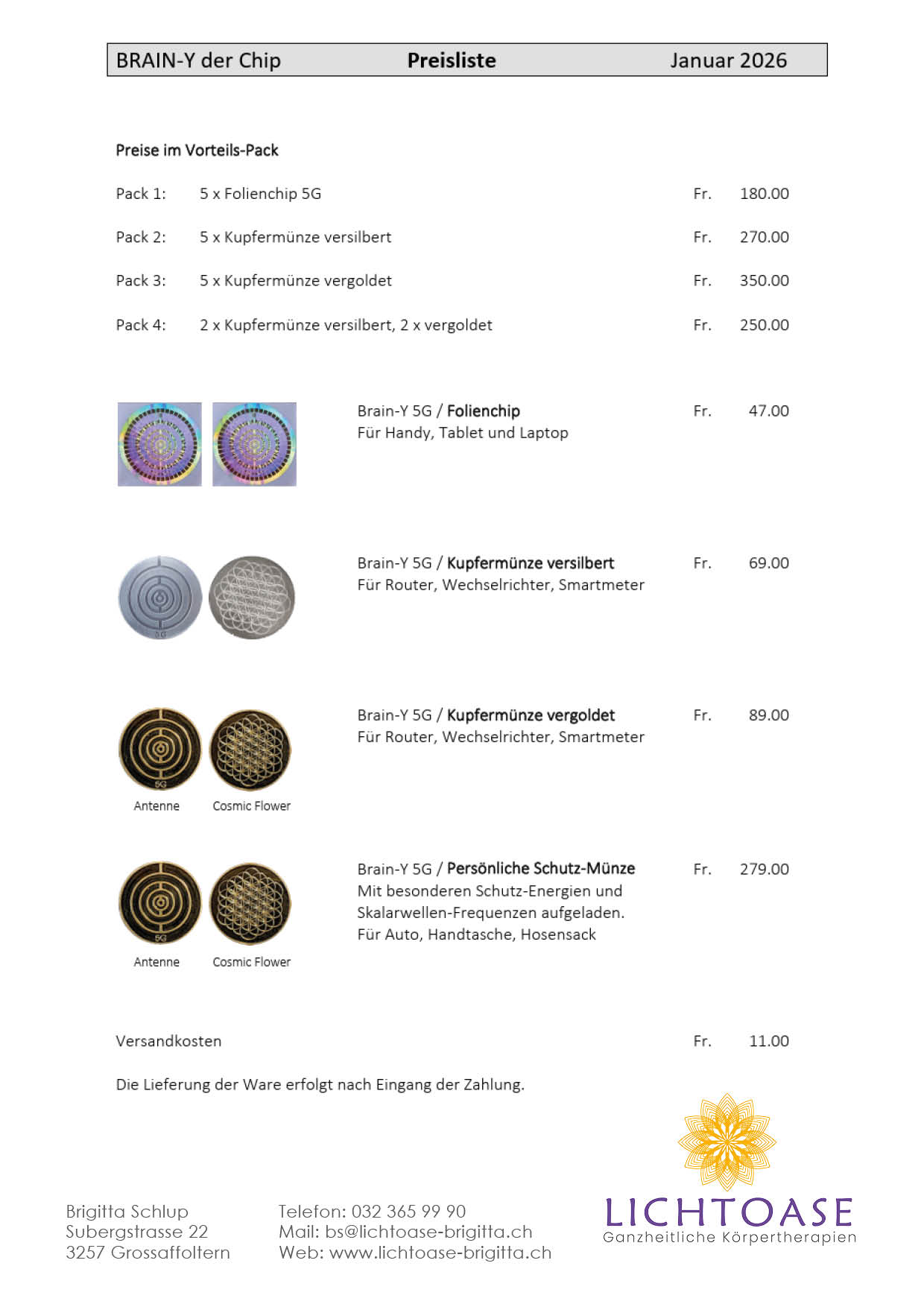 - Der Brain-Y Chip kann Strahlenschutz für Handynutzer, DECT Telefone, WLAN Router, Stromzähler usw. bieten. (Die Apparatetechnik wird nicht beeinträchtigt)